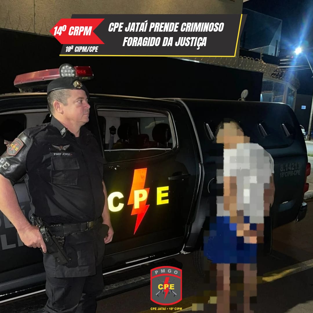 Na noite desta quarta-feira (03/09/2025), em Mineiros/GO, a equipe CPE ALFA tomou conhecimento de uma mandado de prisão em aberto pelo crime de tráfico de drogas. De posse das informações, a equipe durante patrulhamento no setor Leontino, logrou êxito em abordar o individuo foragido da justiça. Sendo este apresentado na Delegacia de Policia Civil para cumprimento do mandado. *RESULTADO:*⚡1 Foragido recapturado*Comandante da CPE: Capitão Robson**Subcomandante do 14º CRPM: Tenente Coronel Messias.**Comandante do 14º CRPM: Coronel Cortez.*14º CRPM: A Segurança do Sudoeste Goiano.